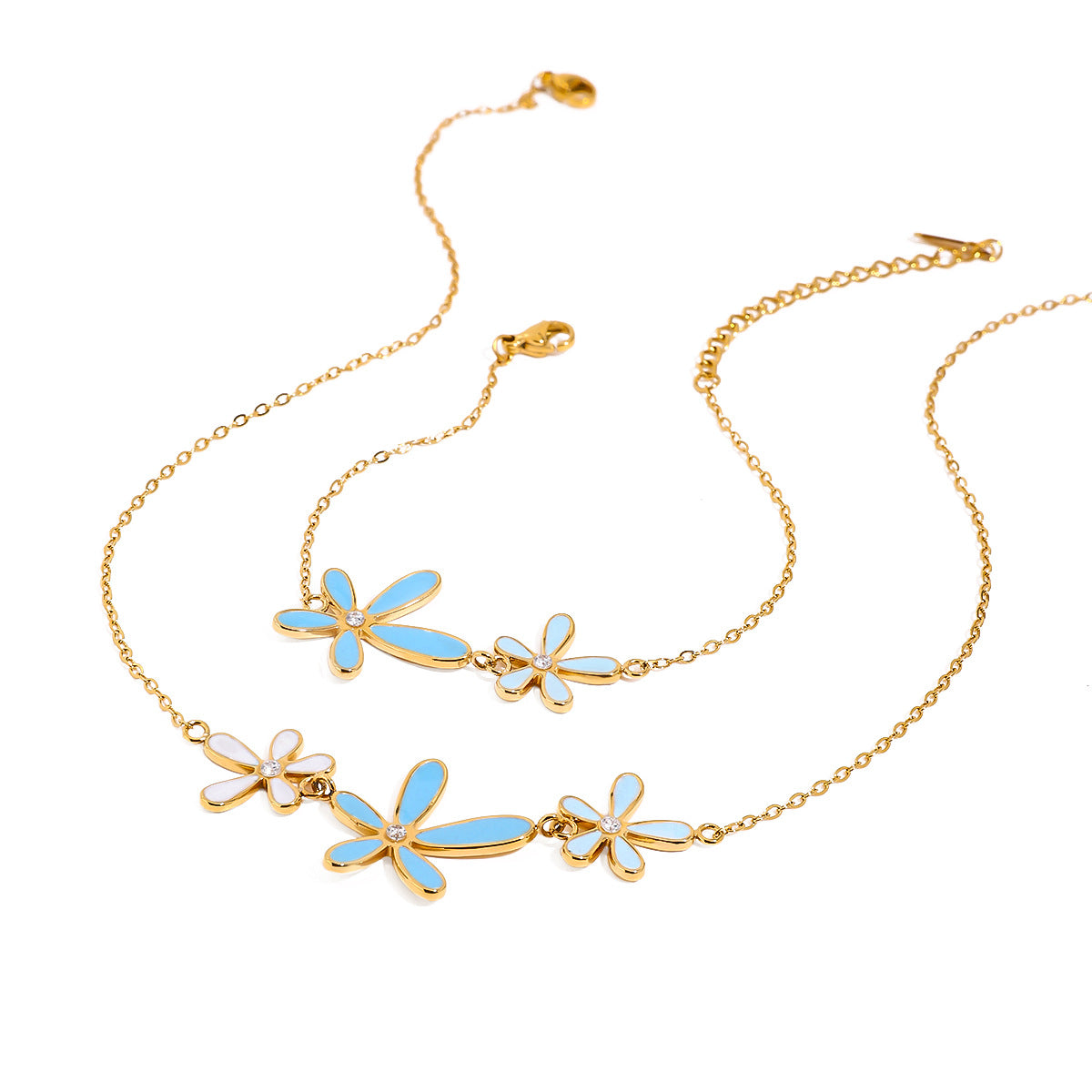 Ocean vacation style stainless steel blue and white oil drip with diamond flower titanium steel hot girl necklace bracelet