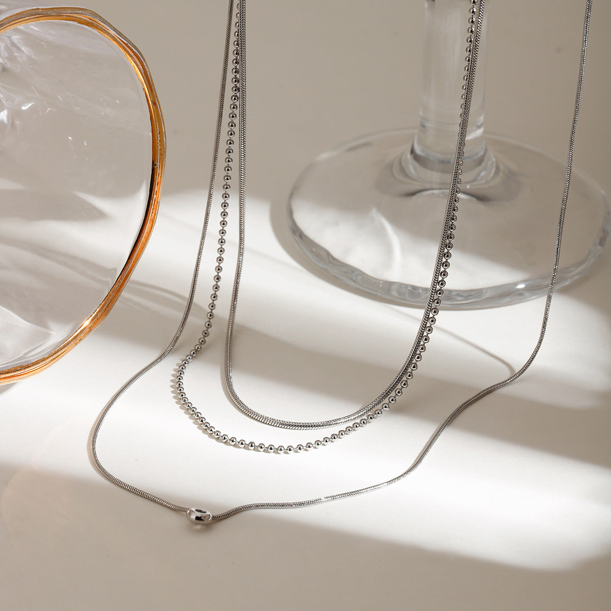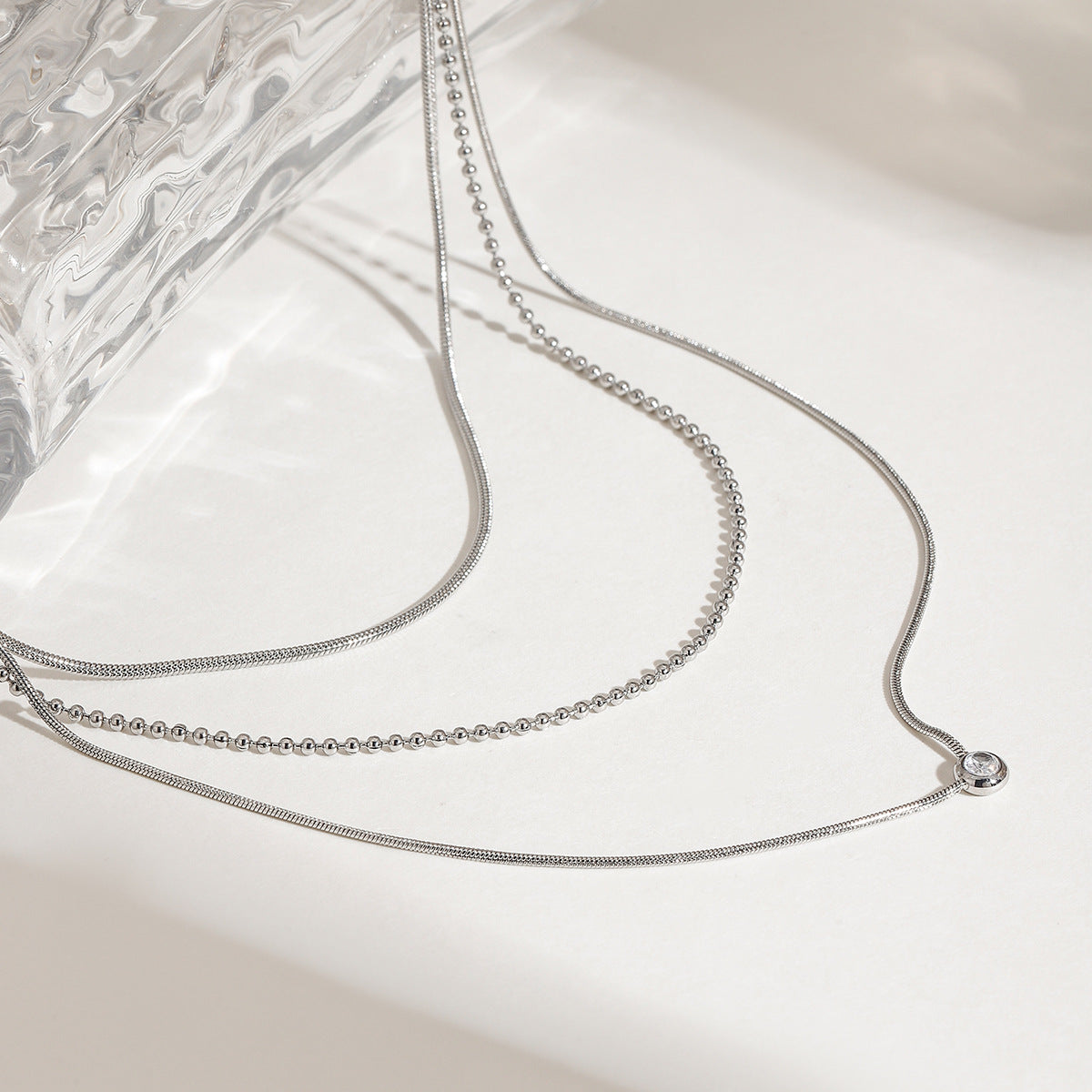 A three-layer titanium steel white rhinestone pendant from Europe and America, light luxury, simple and non-fading INS necklace, collarbone chain