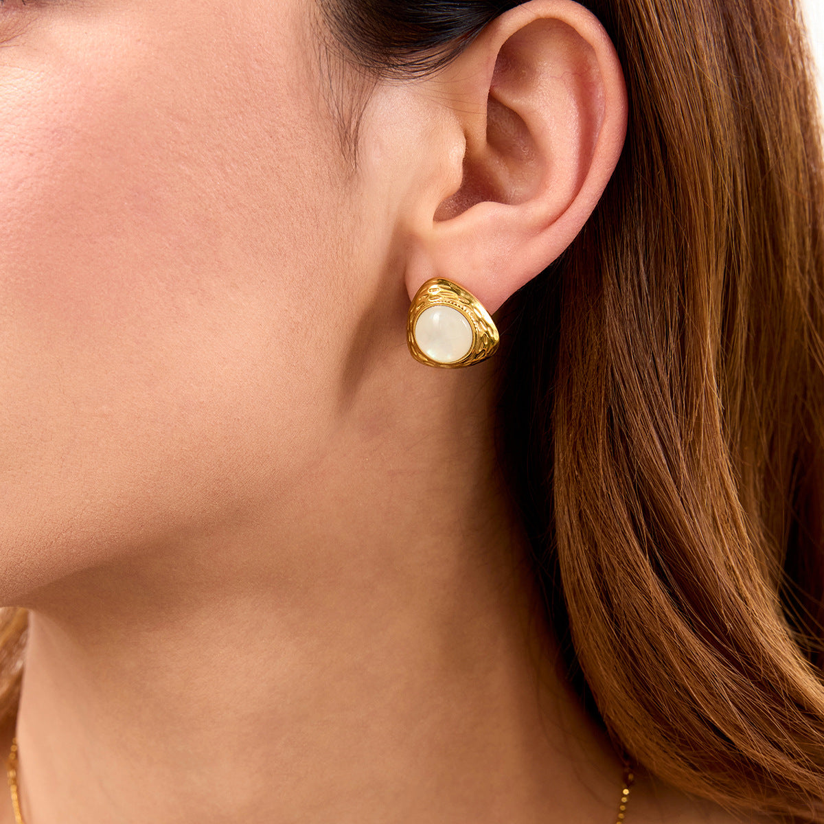 Triangular hammer-patterned round cat's eye stainless steel stud earrings